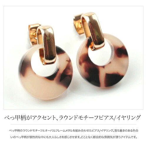 【ゆうパケットOK】べっ甲柄がアクセント、ラウンドモチーフピアス/イヤリング サイズ モチーフの大きさ:2.3cm×1.5cm×0.5cm 重さ 片方 ピアス:1.2g イヤリング:2.1g 素材 合金(ニッケルフリー)※低アレルギー素材です。