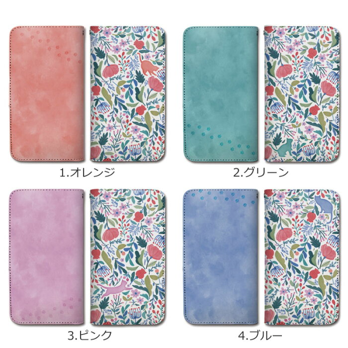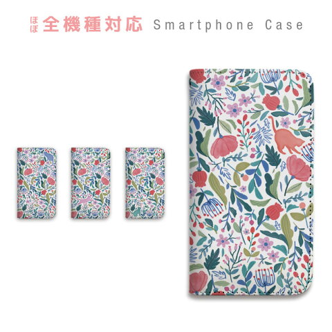 スマホケース 全機種対応 手帳型 携帯ケース ベルトなし マグネットなし 猫 ボタニカル フラワー 花柄 水彩 パステル スマートフォン ケース iPhone12 mini Pro Max SE 11 Pro XS XR X 8 7 Xperia XZ3 XZ2 XZ1 AQUOS sense R2 GALAXY S9 ARROWS BASIO3 [INB]