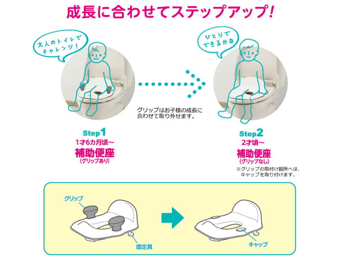 やわらか便座ガード付きで、横滑りを防ぎ、大人用便座へのキズを防ぎます。